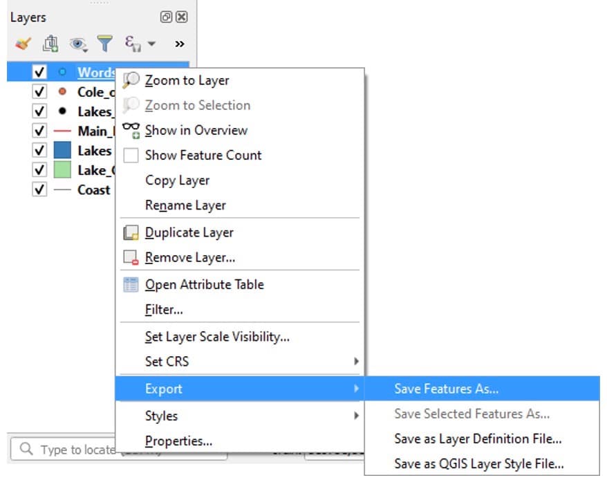 • NOTE: If you wish, you can alter the appearance of your layers by double-clicking on the symbol in the ‘Layers’ list, or right-clicking on your layer, then selecting ‘Properties’.