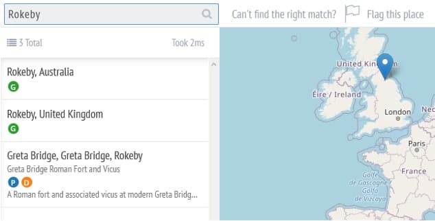 • In this case, our annotation has mistakenly been identified as Rokeby, Australia. We can change this easily by clicking Change, then selecting Rokeby, United Kingdom: