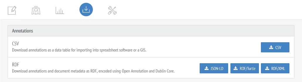 • When ready, export your data from Recogito in .csv format. If there are any places you were unable to identify within Recogito, or if you accidentally assign the wrong coordinates, you can fix these errors using various methods: